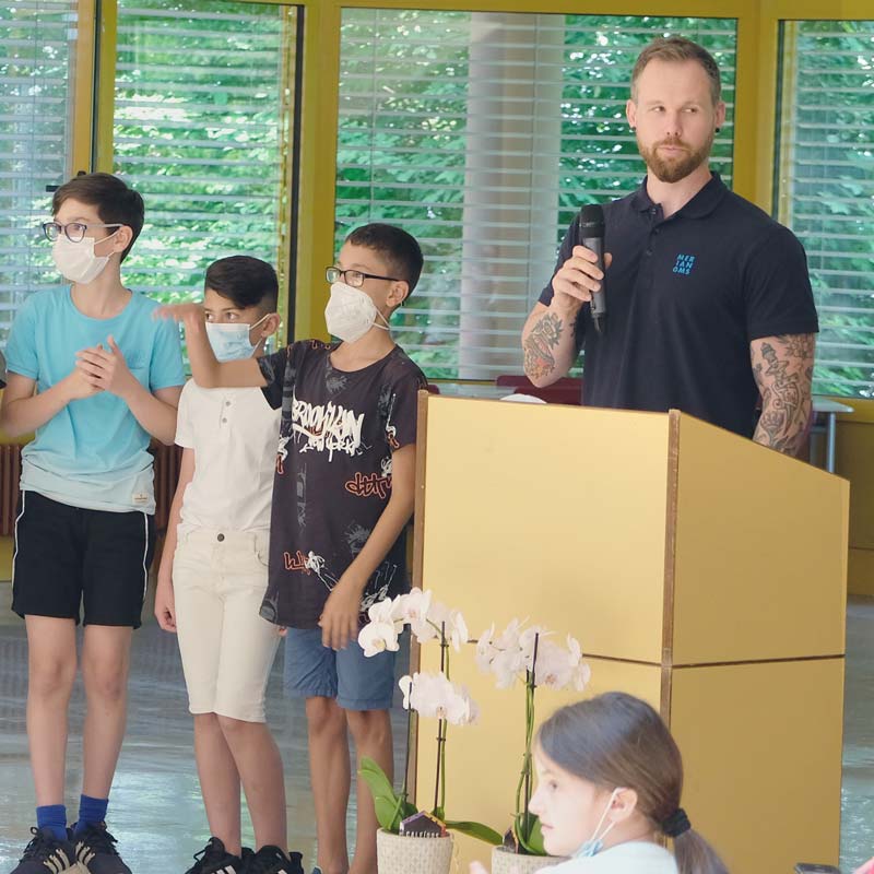 Unsere zukünftigen Fünftklässler:innen mögen sich nach den vier Jahren in der vertrauten Grundschule ähnlich fühlen. Sie treten ins Unbekannte, ins zuvor für sie Nicht-Existete ein und fühlen vielleicht sogar ein inneres Chaos. An der Merian-Gemeinschaftsschule erschafft und gestaltet daraus jede Schülerin und jeder Schüler aktiv ihre/sein Welt, eine Welt aus Erfahrungen, Wissen, Fähigkeiten und einer starken Persönlichkeit. Wir freuen uns, alle neuen Fünftklässler:innen auf diesem Weg begleiten und anleiten zu dürfen.