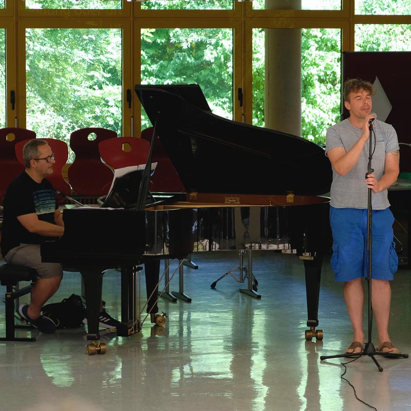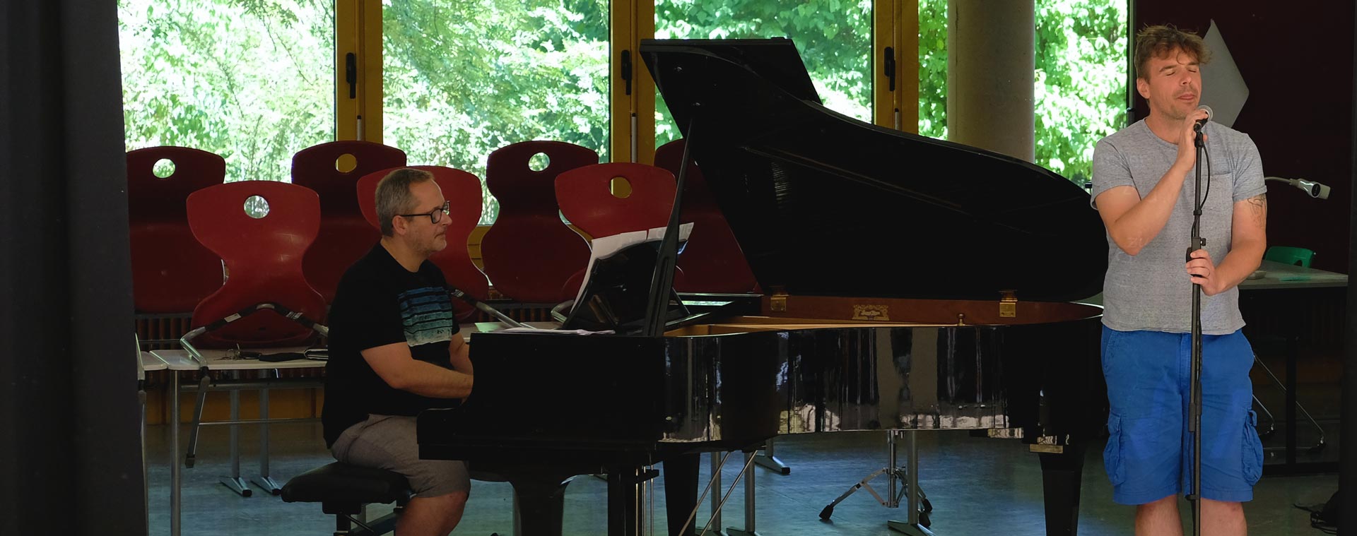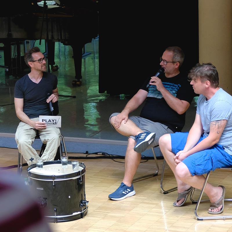 Glücklicherweise war am 26.07.2022 in der Merian-Gemeinschaftsschule letzteres der Fall. Sven Edler vom PLAY!ground hat Boris Ritter (musikalischer Leiter des Stage Palladium Theaters in Stuttgart) und Hannes Staffler (Musical Darsteller, u.a. Rocky, Elisabeth, 3 Musketiere, Jesus Christ Superstar, Ghost - Nachricht von Sam, ...) zu einer interessanten Talk-Runde rund um die Musical-Welt an die Merian-Gemeinschaftsschule eingeladen. Zwischendurch gab es immer wieder musikalische Darbietungen der beiden Profis, die die Bandbreite und das Können eindrucksvoll unter Beweis stellten.