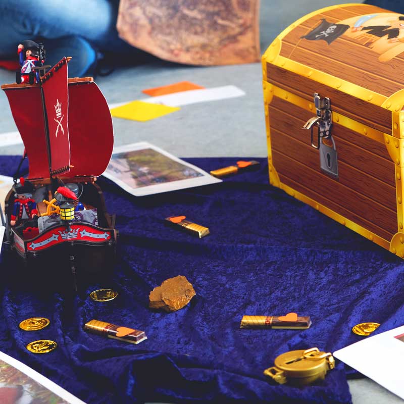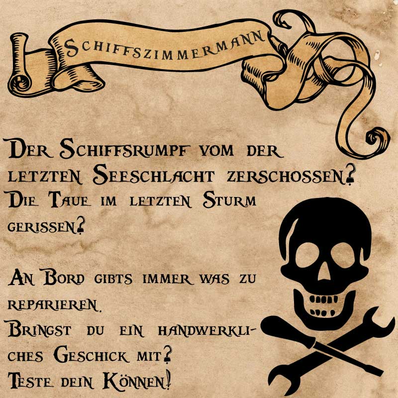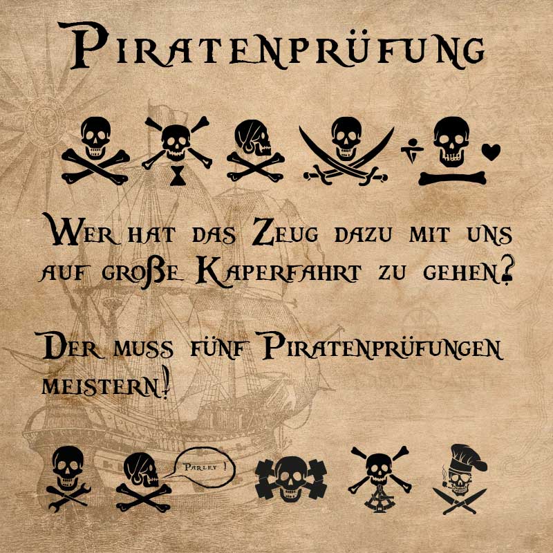 Alle meisterten die Prüfungen beim Schiffszimmermann, Smutje, Navigator, Sportmeister und Diplomaten und bekam nicht nur einen Teil des Goldschatzes, sondern hatte auch noch die Chance bei einer Auslosung einen 1A Seesack für die kommende Kaperfahrt zu gewinnen.